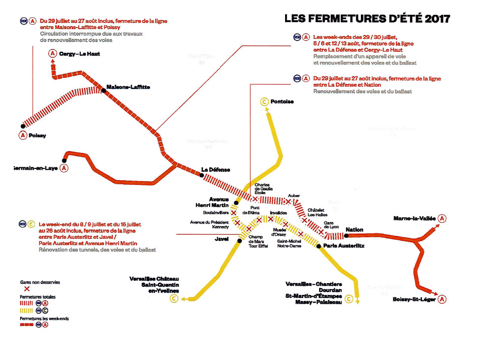 Pendant l'été 2018, la ligne A du RER subira une nouvelle vague de travaux qui entraînera la fermeture totale du tronçon Nation - La Défense. La ligne C est également en travaux. Comment vous organiser ?