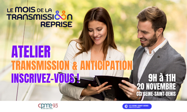 La reprise ou la transmission d’une entreprise est une étape cruciale qui demande préparation, connaissance et accompagnement. Pour vous aider à mieux comprendre les enjeux, les étapes clés et les bonnes pratiques, la CCI Seine-Saint-Denis et la Confédération des Petites et Moyennes Entreprises de la Seine-Saint-Denis (CPME93) co-organisent un atelier dédié à ce sujet.