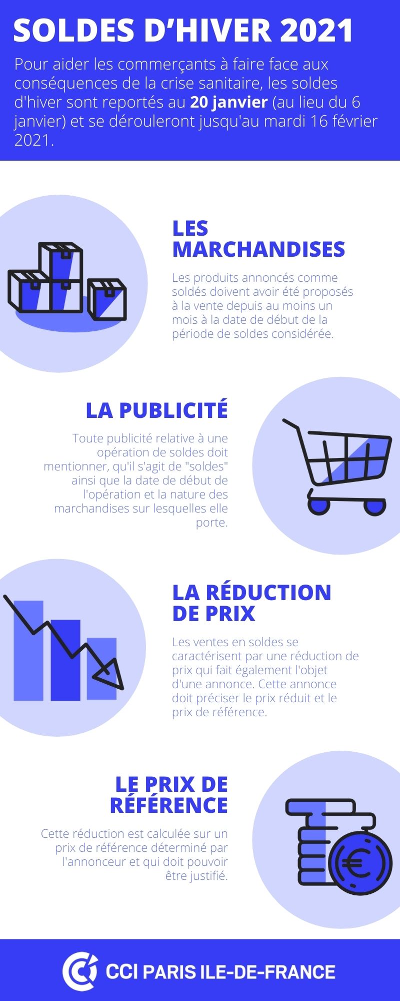 Les soldes sont définies par 3 critères qui permettent de les distinguer des opérations promotionnelles de déstockage, qui elles, sont possibles à tout moment de l'année en dehors des périodes de soldes.